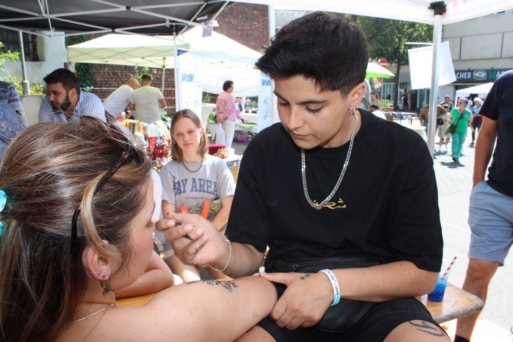 Unser Stand wurde den ganzen Tag über sehr gut besucht. Viele Besucher*innen haben die Gelegenheit genutzt, um mit uns ins Gespräch zu kommen – über unsere Arbeit, über Migration und Teilhabe, über persönliche Geschichten und natürlich auch über Kunst. Es war schön zu sehen, wie Menschen unterschiedlichster Hintergründe miteinander ins Gespräch kamen, sich gegenseitig inspirierten und neue Verbindungen entstanden.
