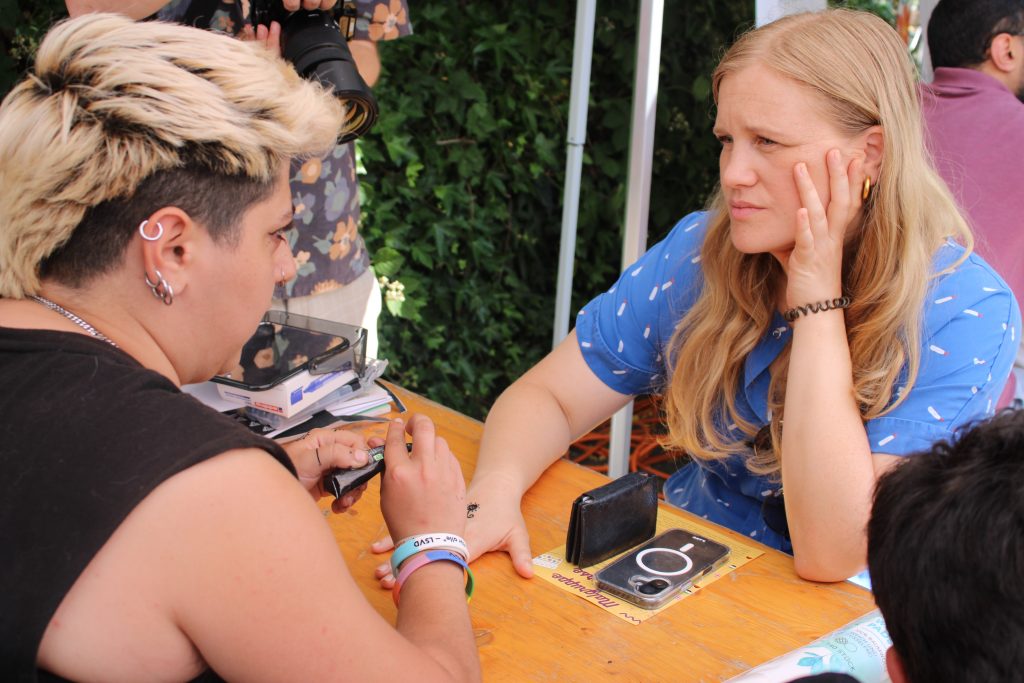 Ein Highlight war der Besuch von Frau Josephine Ortleb, Vizepräsidentin des Deutschen Bundestags. Frau Ortleb nahm sich Zeit, mit uns und den Künstler*innen zu sprechen, zeigte großes Interesse an unserer Arbeit – und ließ sich sogar mit einem traditionellen Henna-Tattoo verzieren! Die Gespräche mit ihr waren ein starkes Zeichen dafür, wie wichtig Kulturarbeit und Begegnungen auf Augenhöhe sind.